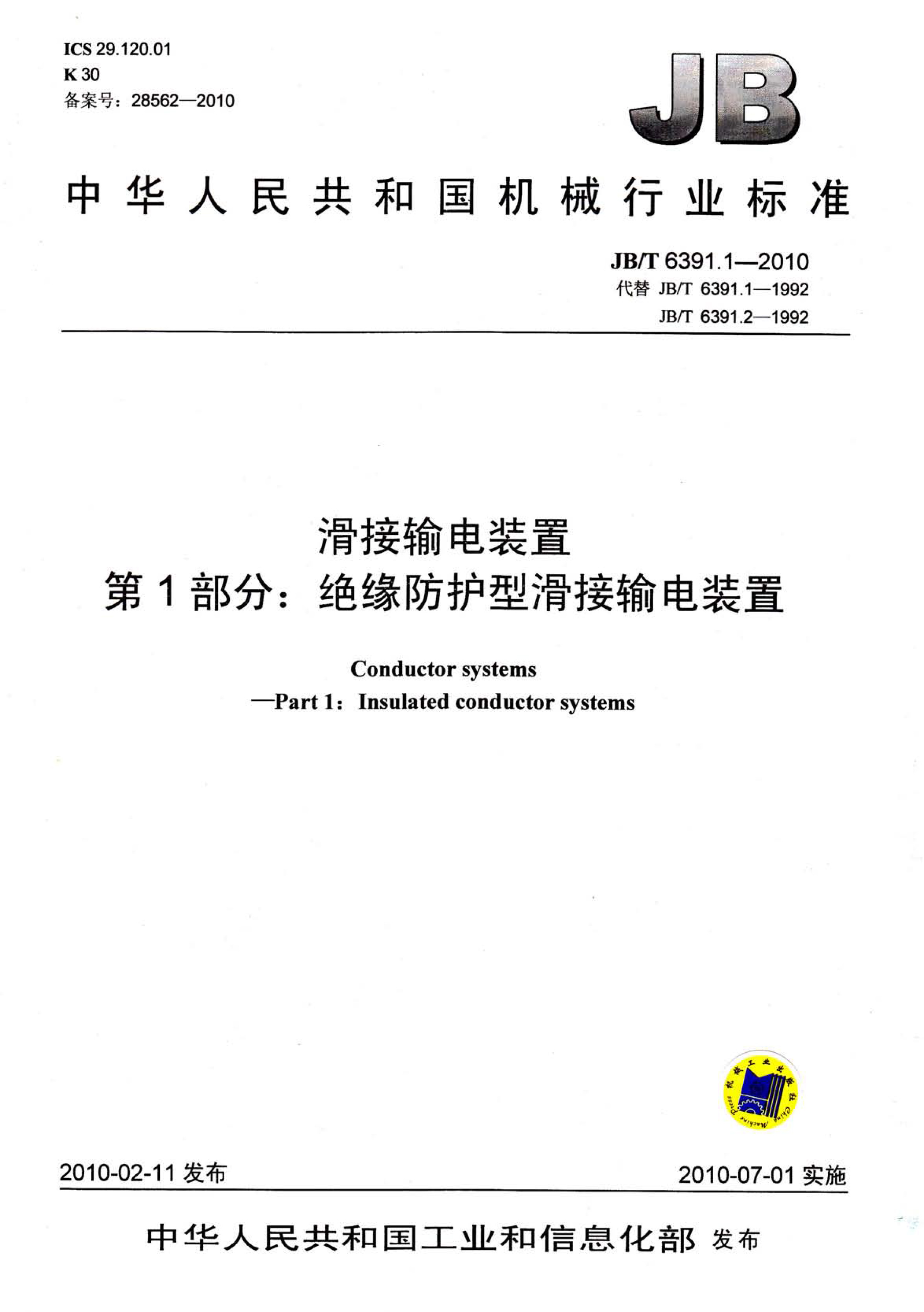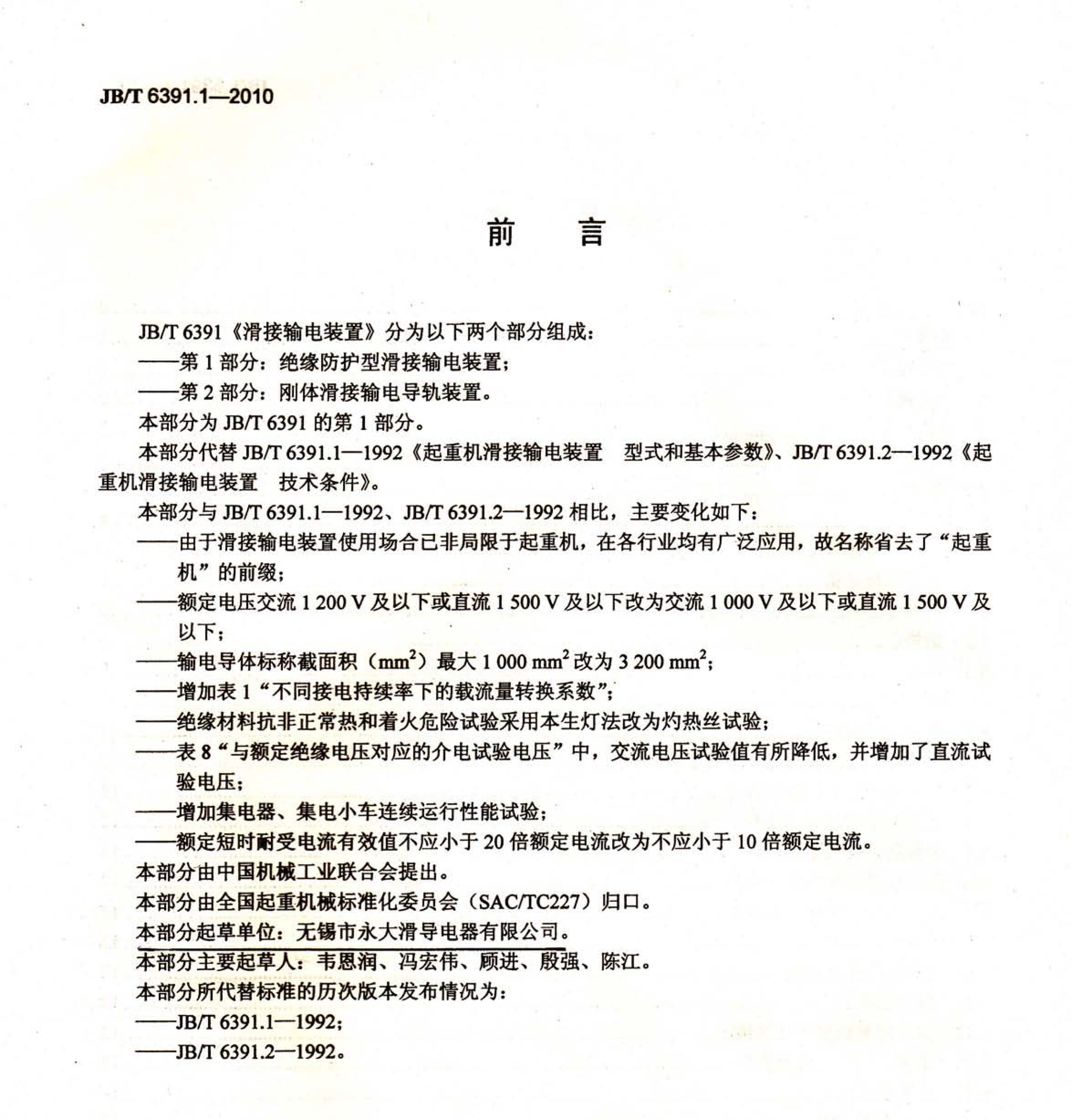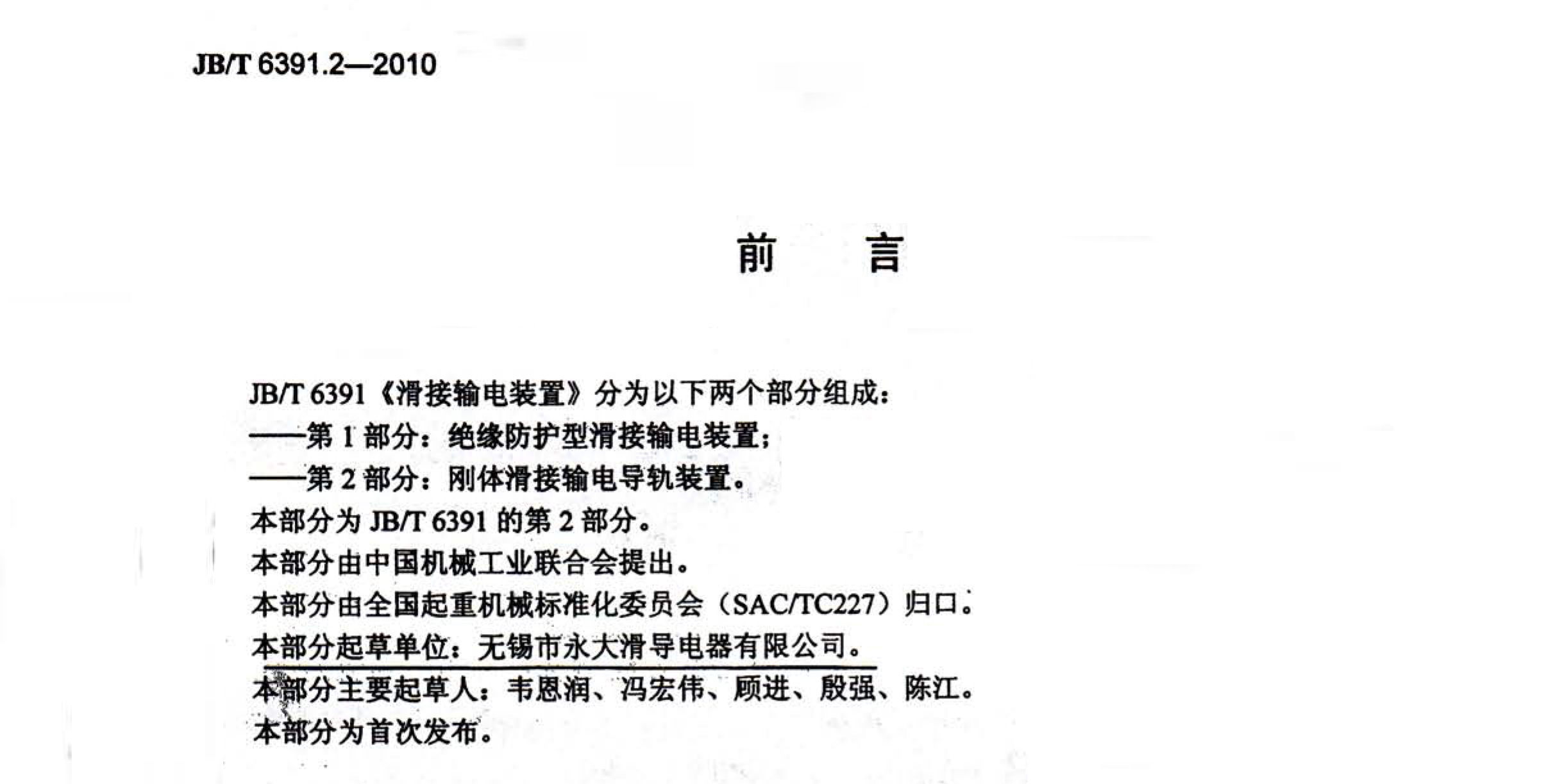 2009年受中國機械工業聯合會委托對舊版標準進行了修訂和補充,于2010年頒布并實施由無錫永大滑導電器有限公司主草的新版滑接輸電裝置標準JB/T6391.1-2010和JB/T6391.2-2010。