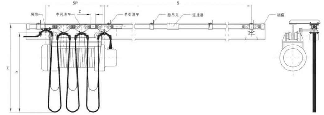 電纜滑車是一種理想的物流供電系統,根據其軌道的不同可分為C型軌電纜滑車和I(H)型軌電纜滑車兩種。該系統對環境的要求比較低,運行平穩且不產生火花,在室內、室外、多塵、多灰及溫差較大的場合均能正常工作。扁電纜和圓電纜均能安裝使用,并在滑車的兩端裝有緩沖裝置,對電纜起保護作用。工具滑車上配有球鉸吊環,能自行校正懸掛物重心。目前電纜滑車已被廣泛應用于各種通用橋式起重機、門式起重機、電動葫蘆自行小車、倉庫、船廠、碼頭等起重設備的移動供電。