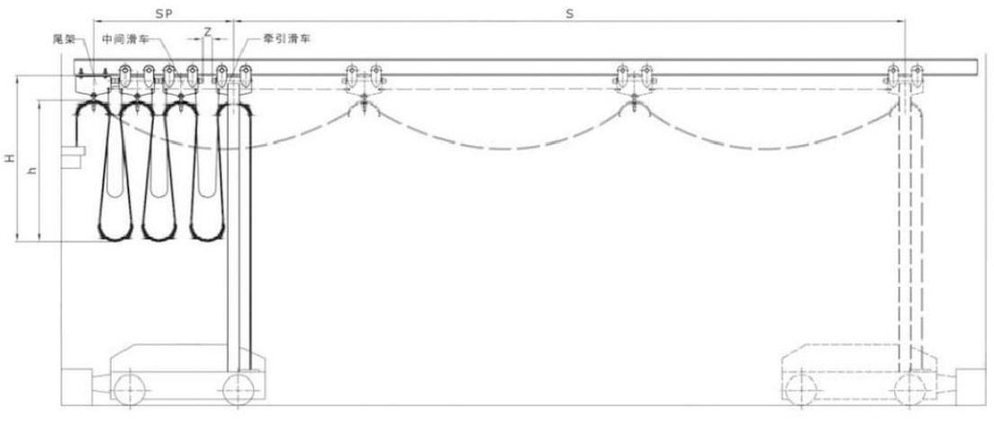 1. 積放空間的長度應該注意的電纜拖車型號,規格,數量。